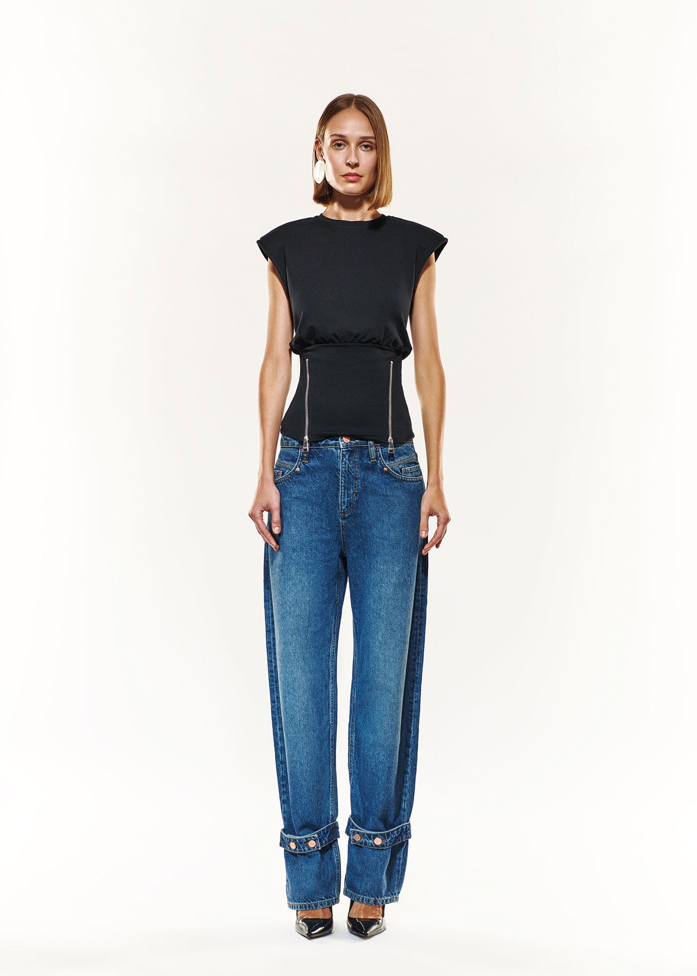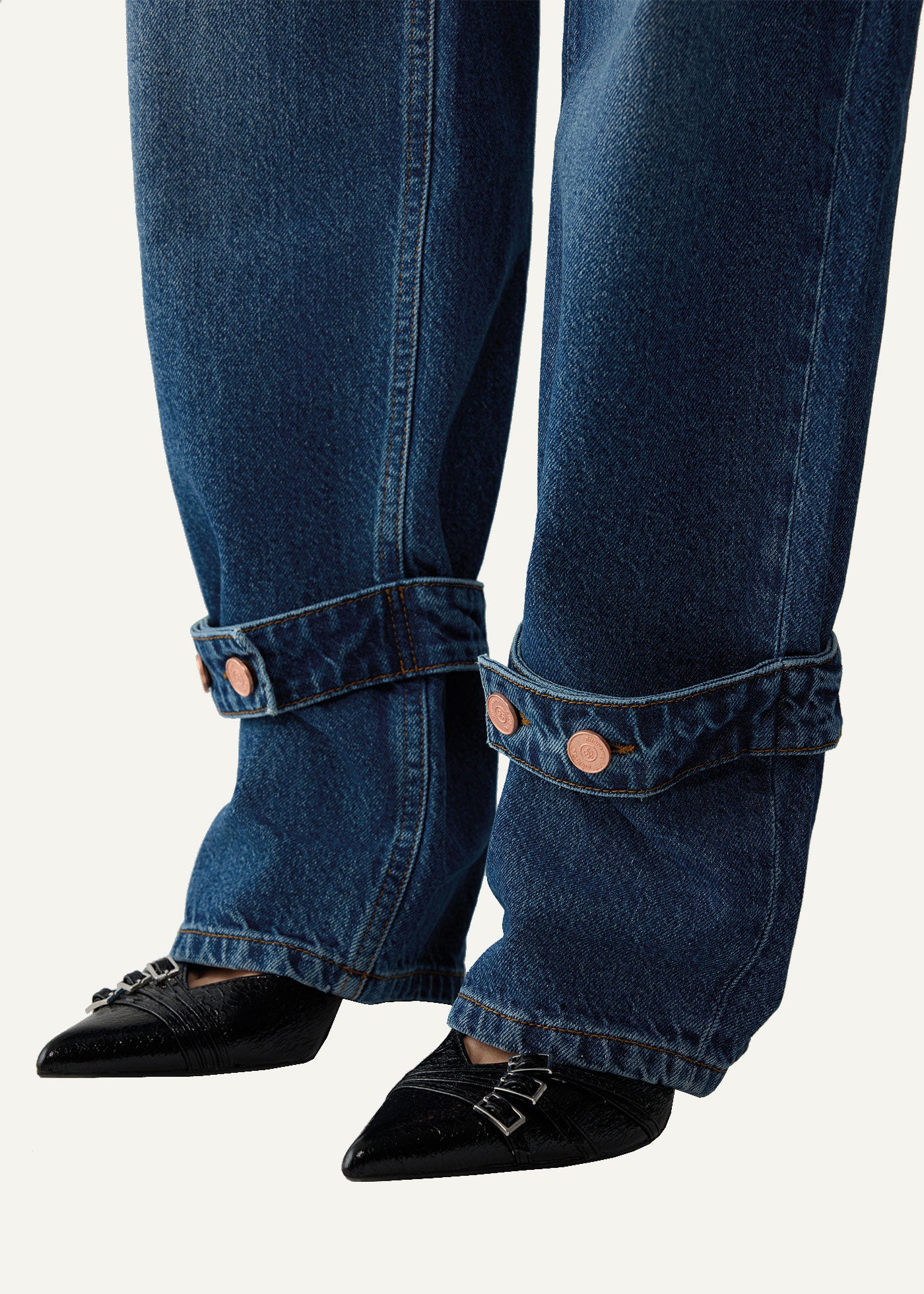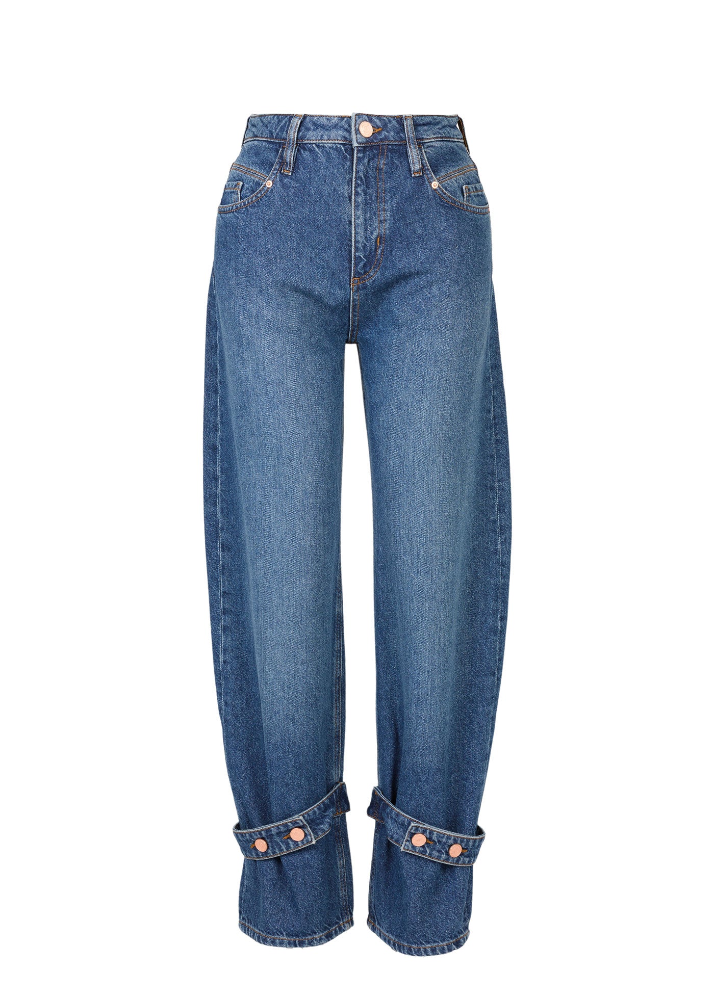 Elevate your denim wardrobe with Daisy Barrel Jeans. Featuring a curved outseam and wide legs tapering towards the ankles, the barrel silhouette couples the comfort of a relaxed fit with playful fashion. The adjustable button detailing on the cuffs adds a unique touch to the pair offering a stylish flair. Cut from viscose and recycled cotton, the fabric feels indulgently luxurious.