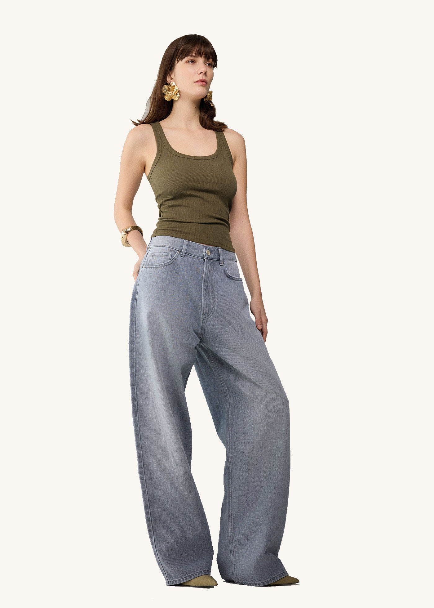 Introducing the Semira Baggy Jeans, a testament to casual chic. Our Semira Baggy Jeans are designed to sit at the waist with an ultra-relaxed silhouette that channels a laidback attitude. To balance it out, style yours with our fitted Lu Tshirt for a flattering look. Crafted in a non-stretch cotton, this pair will get softer with each wear.